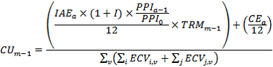 El costo unitario de los servicios a cargo del gestor del mercado, , se determinará de acuerdo con la siguiente ecuación: