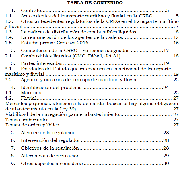 1.2. Otros antecedentes regulatorios de la CREG en el transporte marítimo y fluvial