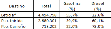 Los agentes optan por el transporte en carro tanque o en barcazas, en función de la navegabilidad y de las condiciones de las carreteras, que dependen de las temporadas de lluvias o las temporadas secas y la intensidad de cada temporada.