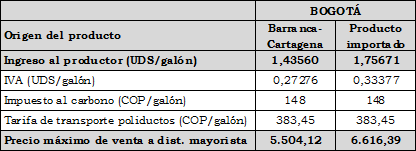 (Res. 181358) Modif. Art. 7 Res. 82438 y deroga la Res. 80725 | Precio máximo de venta en planta de abasto, GMC y Diesel en el departamento de San Andrés y Providencia. PMA(t) = PMI(t) + Md + Costo del cabotaje entre Cartagena y San Andrés + Mom | 324,11 |