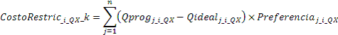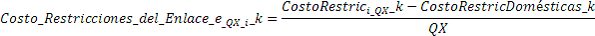 B. El Costo de Restricciones del Enlace i se determinará para cada período k y para las cantidades que se encuentran entre el QX del primer incremento hasta el QX que contiene la cantidad Qmedio, de conformidad con la siguiente fórmula: