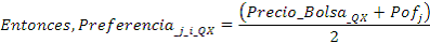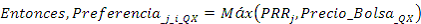 Preferencia_j_i_QX: Precio de referencia para el recurso j para una cantidad de exportación QX por el enlace i.