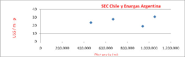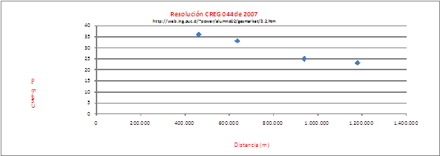 Si se corrigen esos valores, se hace evidente que las economías de escala por longitud que la CREG encontró en los anteriores análisis (para tomar la Decisión CREG 044 de 2007) ya no son contundentes. Esto ocurre porque el costo unitario del gasoducto Gas Andes, que tiene la menor longitud, cuando se ajustan los valores de la inversión de Atacama y Gas Pacífico, muestra comparativamente un menor valor.
