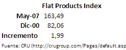 El ajuste de 1.5 veces se encontró a partir de un valor promedio de la serie. Ese incremento no refleja el valor del acero en el momento de la toma de la decisión. La CREG nuevamente calculó el incremento y encontró que entre mayo de 2007 y diciembre de 2000 (ver Tabla 4) hay un ajuste de 1.99 veces.