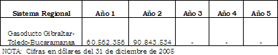 “ARTÍCULO 4. INVERSIÓN BASE. La Inversión Base del gasoducto Regional Gibraltar-Toledo-Bucaramanga sólo comprende las nuevas inversiones como se indica a continuación: