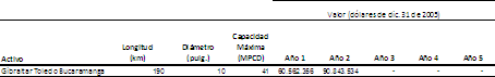 e. Una vez actualizado el valor de la inversión, es necesario hacer un ajuste por el diámetro. El proyecto Gibraltar Toledo Bucaramanga tiene 10” y el de Camisea, en promedio 24”.