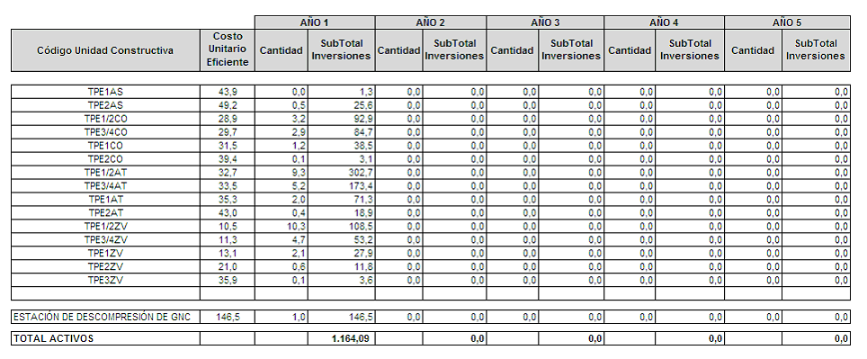 2.1. Inversión Existente. Como inversión existente no se reconoce monto alguno, por tratarse de un mercado nuevo, de conformidad con la información presentada por la Empresa.