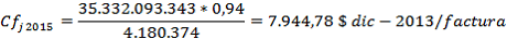 Para los demás años, el valor del costo base se reduce en 263,97 $/factura con lo que se tiene que: