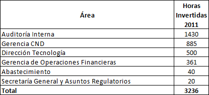 Con base en lo anterior, a continuación detallamos las horas de dedicación de personal durante el año 2011, para llevar a cabo la auditoría regulada de ASIC-TIEs: