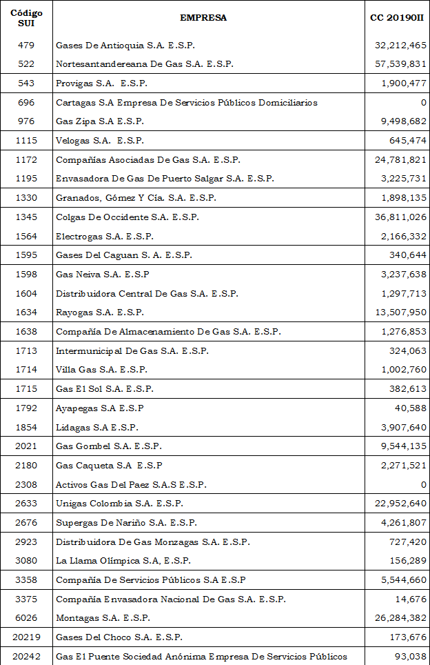 “En atención a su comunicación del radicado del asunto, mediante la cual solicita la información del SICMA, reporte de cilindros al SUI y tanques estacionarios para calcular la capacidad de compra de la que trata el artículo 8 de la Resolución CREG 063 de 2016, modificado por el artículo 1 de la Resolución CREG 180 de 2017, aplicable al segundo semestre de 2019 y considerando lo señalado en el Radicado 201920000284701 de fecha Abril de 2019, mediante el presente escrito estamos enviando la información obtenida de las bases de datos disponibles en el Sistema Único de Información — SUI, en los siguientes términos: