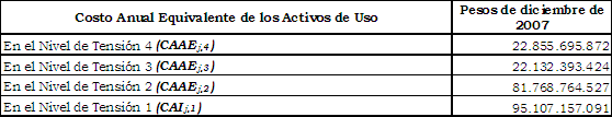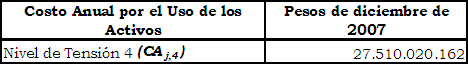 Artículo 1. Costo Anual por el uso de los activos del Nivel de Tensión 4. El Costo Anual por el Uso de los Activos del Nivel de Tensión 4 operados por la Electrificadora de Santander S.A. E.S.P., calculado en la forma establecida en la Resolución CREG 097 de 2008, es el siguiente: