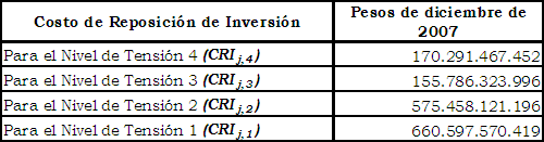 Artículo 5. Costos de reposición de la inversión. Los costos de reposición de la inversión del OR Electrificadora de Santander S.A. E.S.P. para cada nivel de tensión, calculados en la forma establecida en la Resolución CREG 097 de 2008, son los siguientes: