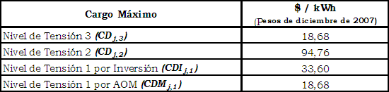 Artículo 2. Cargos Máximos de los niveles de tensión 3, 2 y 1. Los Cargos Máximos de los niveles de tensión 3, 2 y 1 del sistema operado por la Electrificadora de Santander S.A. E.S.P., calculados en la forma establecida en la Resolución CREG 097 de 2008, son los siguientes: