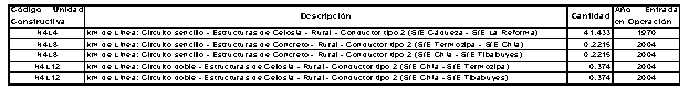 Que la solicitud de CODENSA, en relación con los activos asociados a la Subestación Chía, incluye la Unidad Constructiva N4L12 “km de Línea: Circuito doble – Estructuras de Celosía – Rural – Conductor tipo 2” para la línea IATBTSU con una longitud de 0.3740 km, la cual no se incluirá en los cálculos de la actualización dado que de acuerdo con el diagrama unifilar presentado y las observaciones de CODENSA, el tramo de la UC N4L12 de la línea IATBTSU es el mismo de la UC N4L12 reconocido para la línea TIZA, y el concepto 3965 de la UPME solamente incluye 0.374 de la UC N4L12;