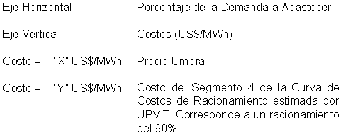 Precio Umbral. Es el costo equivalente al primer segmento de la Curva de Costos de Racionamiento definida por la UPME.