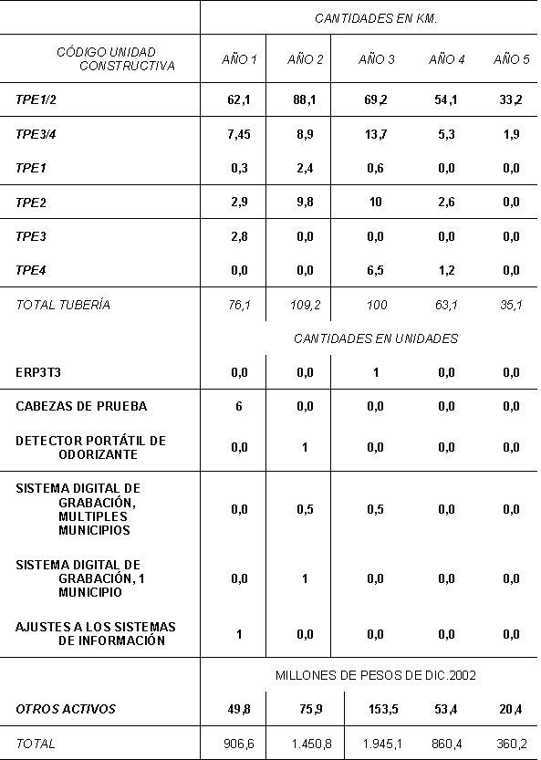 Que GASES DE LA GUAJIRA S.A. ESP., mediante comunicación con radicado CREG E-2003-5539 del 2 de junio, reportó a la CREG las proyecciones de demanda, las proyecciones de gastos de AOM de distribución y el programa de nuevas inversiones para el horizonte de proyección, clasificadas según el listado de unidades constructivas establecido en el Anexo No. 1 de la Resolución CREG 011 de 2003;
