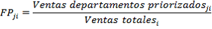 Ventas Departamentos Priorizadosi: Corresponde a la suma de las ventas promedio mensual de la empresa j en los departamentos que hacen parte de la fuente i objeto del presente acto administrativo, registradas en el Sistema Único de Información de la Superintendencia de Servicios Públicos Domiciliarios (SUI), entre enero de 2016 y junio de 2017.