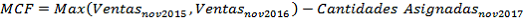 Mecanismo de asignación y comercialización: La determinación de las cantidades a asignar por empresa para atender el déficit de los departamentos priorizados a que hace referencia la Resolución 41291 de 2017 del Ministerio de Minas y Energía se realizará por medio de la aplicación de las siguientes fórmulas: