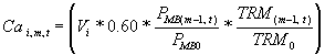 TRM (m-1, t) : Tasa representativa del mercado, TRM, correspondiente al mes m-1, del año t reportado por el Banco de la República ($/Us)