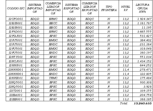 | Frontera I2FIE001 (Fuente XM) | 12.678.022,9 | 1,0542696 |