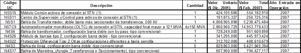 1. CODENSA mediante Comunicación de octubre 10 de 2007 solicitó a la CREG la revisión del Costo Anual de Activos de Conexión al Sistema de Transmisión Nacional y del Costo Anual por el uso de los activos del Nivel de Tensión 4, por nuevos activos involucrados en el proyecto "Activos de Conexión al STN y Activos STR Subestación Bacatá 500/115 kV".
