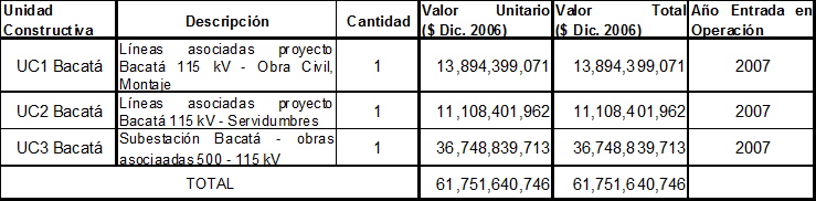 Para acometer el proyecto, CODENSA solicitó a ISA una oferta por la ejecución del proyecto de la subestación Bacatá, en donde ISA ofertó un valor de $2.301.000 US, como costo anual de conexión, considerando exclusivamente la bahía de conexión a 500kV y la transformación 500-115 kV. Posteriormente ISA consideró una revisión de los costos por solicitud de Codensa, donde propuso como oferta comercial por la bahía y transformación mencionadas, un valor de $1.611.000 US como costo anual de conexión, situación que claramente representaba un costo de hasta un 40% superior al costo anual asimilado de la Resolución 082 de 2002.