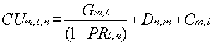 CUm,t,n Costo unitario de prestación del servicio ($/kWh), correspondiente al mes m del año t, para los usuarios conectados al nivel de tensión n.