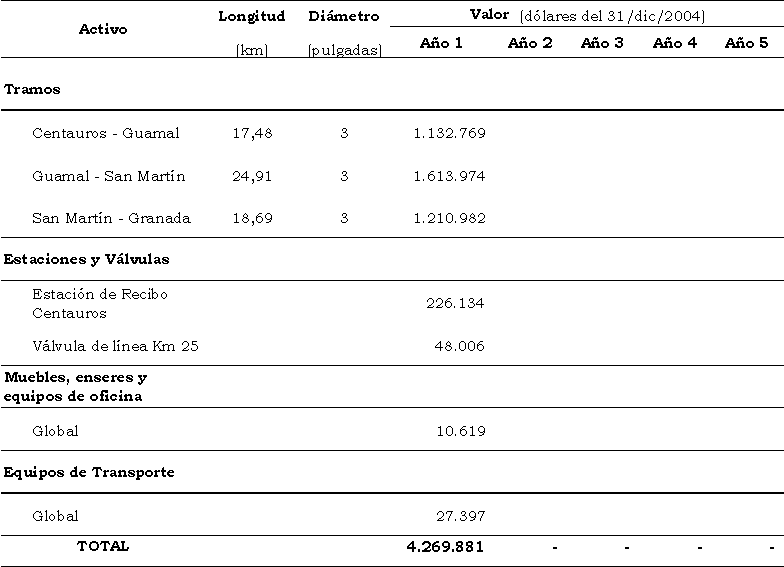 ARTÍCULO 3. INVERSIÓN BASE. La Inversión Base del Gasoducto Regional del Ariari sólo comprende el Programa de Nuevas Inversiones como se indica a continuación: