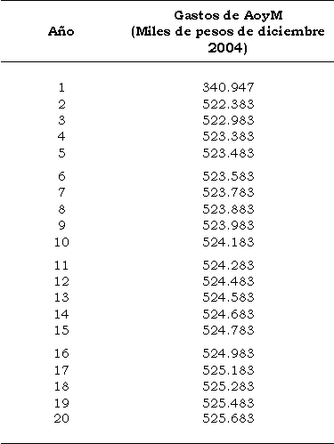 NOTAS: Estos cargos están expresados en dólares del 31 de diciembre de 2004, Las comas indican decimales