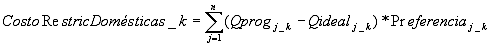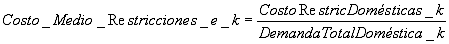 CostoResticDomésticas_k: Costo de las Restricciones para el período k, para la demanda total doméstica, calculado con el procedimiento descrito para Costo_Medio_Restricciones_k (Anexo 3).