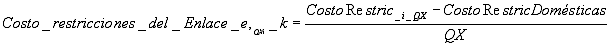 CostoRestic_i_QX_k: Costo de las Restricciones considerando una TIE de exportación QX por el enlace i.