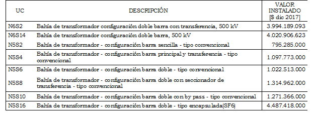 Tabla 1 Unidades constructivas de la categoría de otros activos de subestación