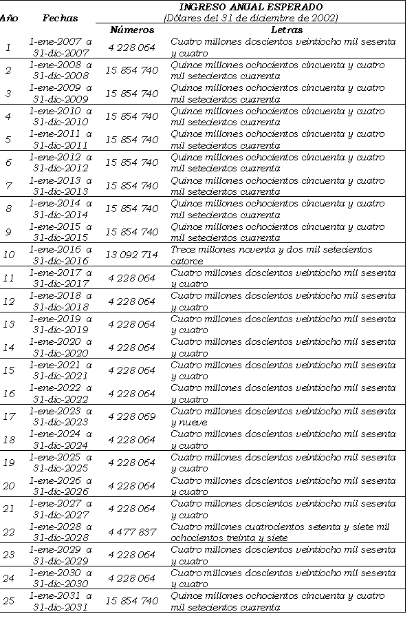 Como se observa, esta norma se refiere a la forma como se debe expresar el Ingreso Anual Esperado, para cada uno de los veinticinco años del flujo de ingreso, los cuales se deben contar desde la fecha prevista para la puesta en operación.