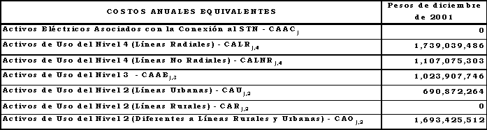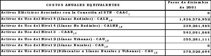 a) Costo anual parar remunerar los activos de uso para los niveles de tensión 4, 3, 2, sin aplicar los criterios de eficiencia de que trata el Anexo No. 8 de la Resolución CREG 082 de 2002;