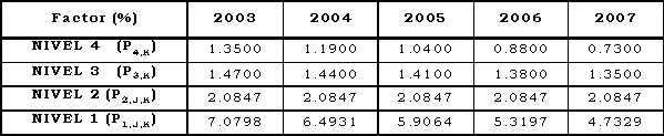 Parágrafo. Los factores de que trata el presente Artículo se aplicarán de acuerdo con la siguiente expresión: