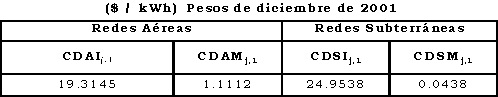 - Cargo de transición para el primer mes de aplicación del Cargo Máximo de Nivel de Tensión 2 aprobado en esta Resolución: 52.9801 $/kWh (pesos de diciembre de 2001).