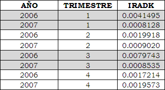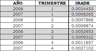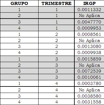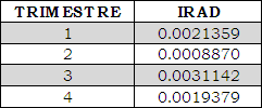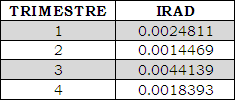 Tabla 1. IRAD por trimestre para el nivel de tensión 1.