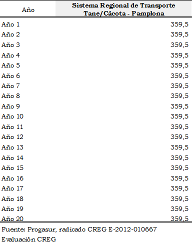 Por la cual se establecen los cargos regulados para el gasoducto Tane/Cácota – Pamplona, según solicitud de Promotora de Gases del Sur S.A. E.S.P., Progasur S.A. E.S.P.