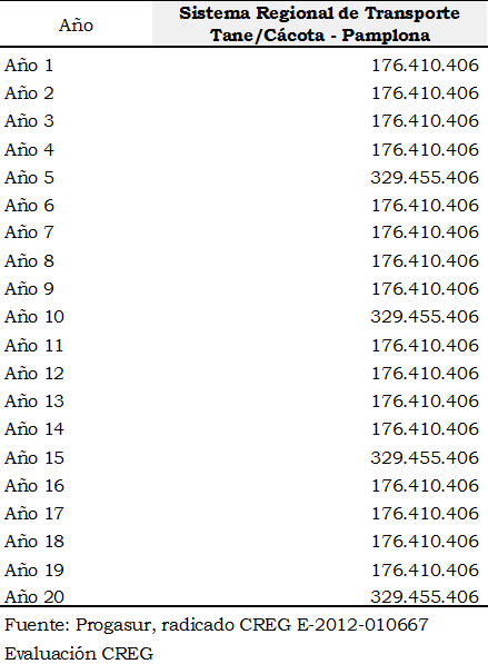 De conformidad con lo dispuesto en el artículo 25 de la metodología, mediante la Circular No. 001 de 2013 la Comisión hizo público el contenido del sobre No. 1 que Progasur radicó en la CREG como parte de la solicitud de cargos del gasoducto Tane/Cácota – Pamplona.