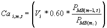 Ca i, m, t : Componente del precio del cilindro de i libras que refleja los precios del acero internacional correspondiente al mes m del año t, expresado en pesos colombianos.