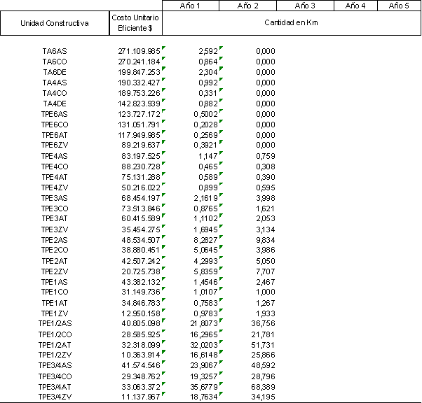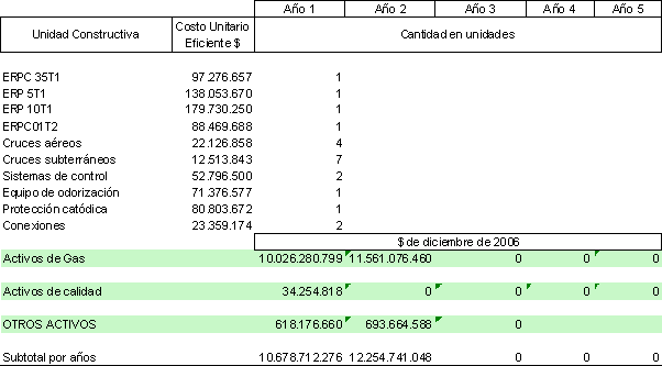 Que la solicitud tarifaria presentada por Alcanos de Colombia S.A. ESP. incluye las proyecciones de demanda, las proyecciones de gastos de AOM de distribución y el Programa de Nuevas Inversiones, clasificadas según el listado de unidades constructivas establecido en el Anexo No. 1 de la Resolución CREG 011 de 2003;