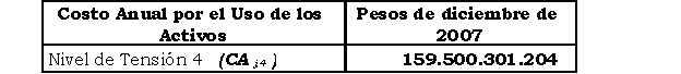 “Artículo 1. Costo Anual por el uso de los activos del Nivel de Tensión 4. El Costo Anual por el Uso de los Activos del Nivel de Tensión 4 operados por CODENSA S.A E.S.P., calculado en la forma establecida en la Resolución CREG-097 de 2008, es el siguiente: