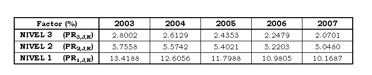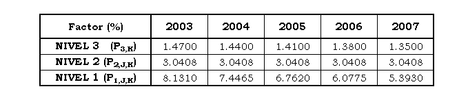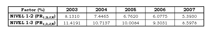 b) Factores para referir las medidas en el nivel de tensión 1 a los Niveles de Tensión 2 y 3: