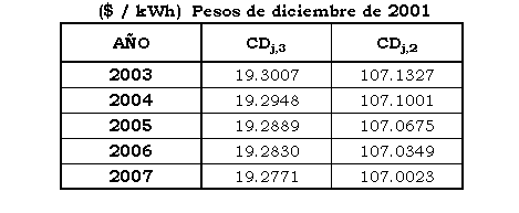 - Cargo de transición para el primer mes de aplicación del Cargo Máximo de Nivel de Tensión 2 aprobado en esta Resolución: 45.5915 $/kWh (pesos de diciembre de 2001).