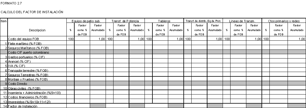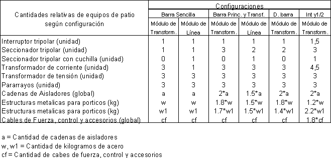 Para valorar Módulos de subestación (de línea o de transformación) se deben utilizar módulos típicos. Los utilizados en la valoración anterior fueron los siguientes: