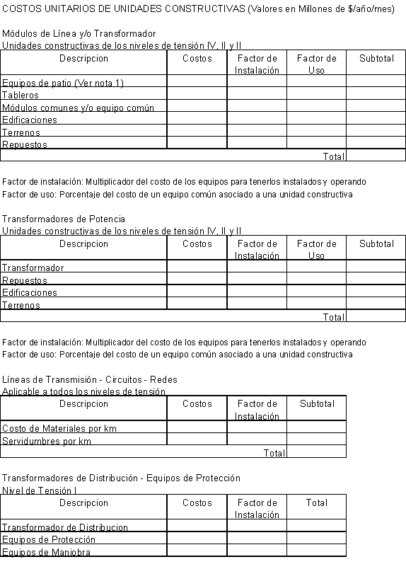 Para circuitos primarios y redes se consideraran las siguientes unidades constructivas: