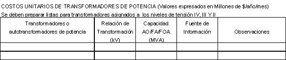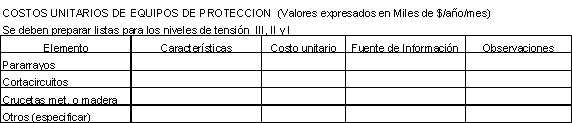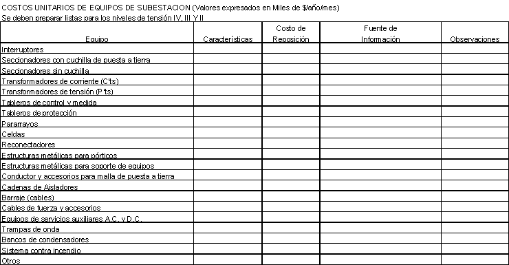 Para las subestaciones las unidades serán:
