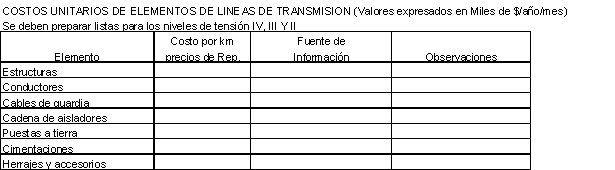 Las unidades de costos deben utilizar solamente dos tipos de apoyos: Metálico o Concreto (la madera se asimila al concreto), tanto para circuitos sencillos, como para doble circuitos.