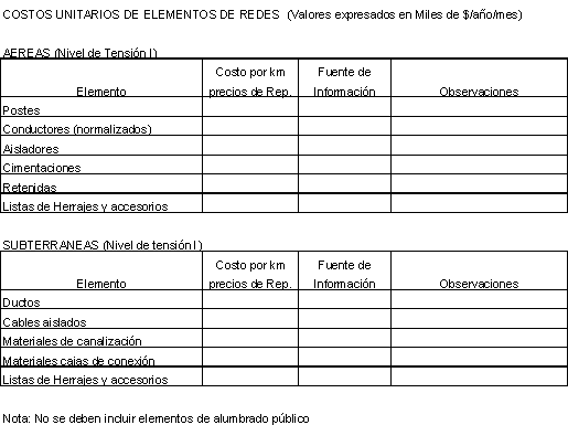 Por simplicidad, para valorar líneas, circuitos primarios y redes de distribución secundaria, se deben utilizar los conductores normalizados que tenga la empresa, o en su defecto, utilizar los siguientes: