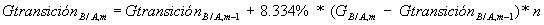 GtransiciónB/A,m : Precio de transición del GLP producido en la refinería de Barrancabermeja y en el campo de Apiay a aplicar durante el mes m.